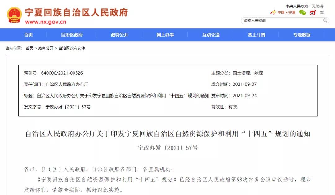 日前發(fā)布的《寧夏回族自治區(qū)自然資源保護(hù)和利用“十四五”規(guī)劃》明確,“十四五”時(shí)期,寧夏自然資源保護(hù)和利用將實(shí)現(xiàn)6個(gè)新目標(biāo)。